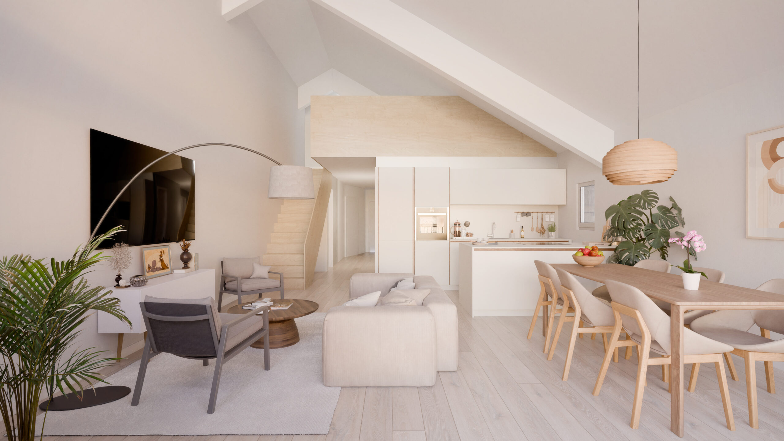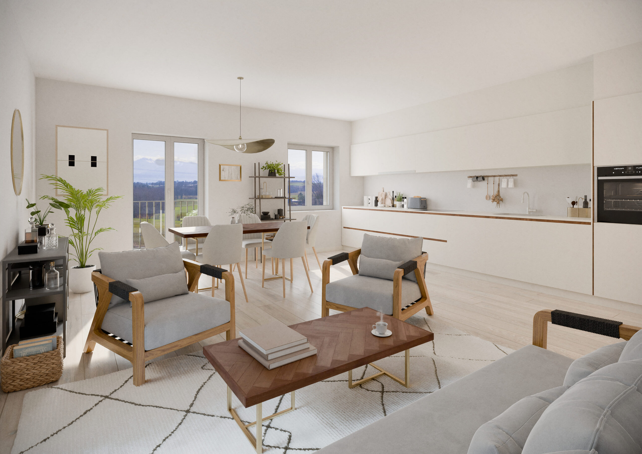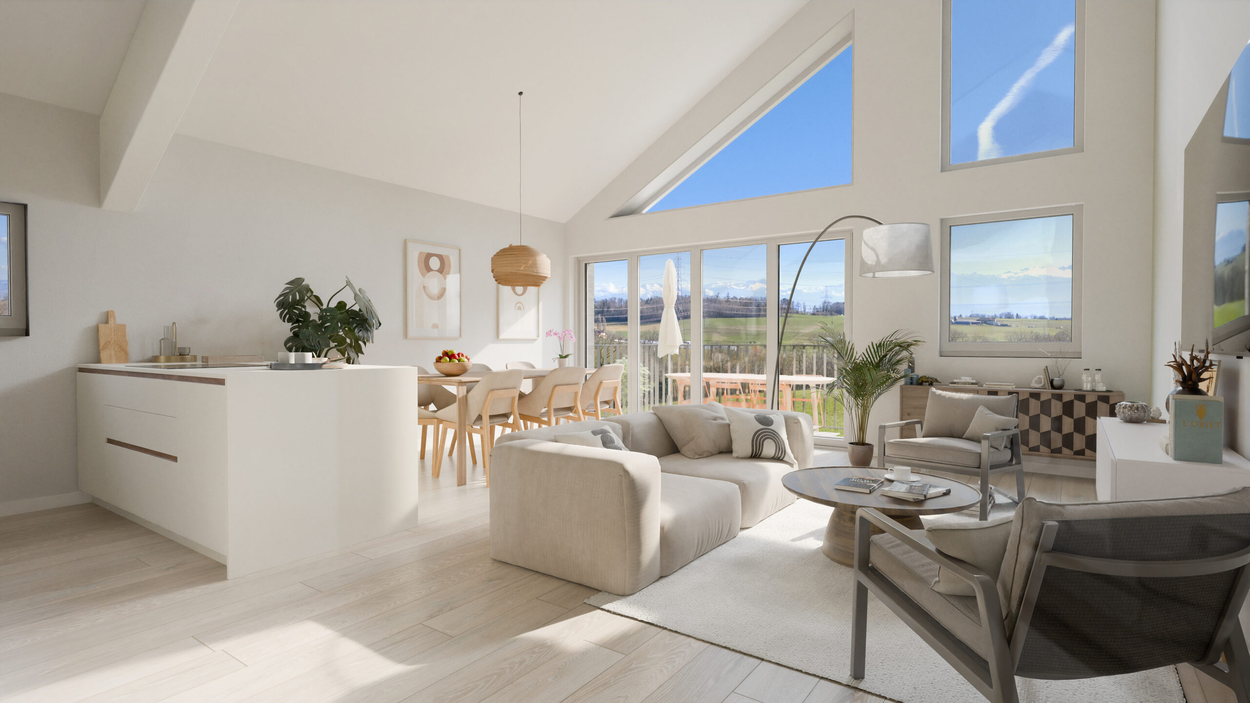 Renovation d’une ferme traditionnelle soigneusement convertie en cinq appartements de luxe de 4.5 pièces. Situés à la limite des terres agricoles, ces logements offrent une vue époustouflante sur le lac et les Alpes, garantissant une totale tranquillité.