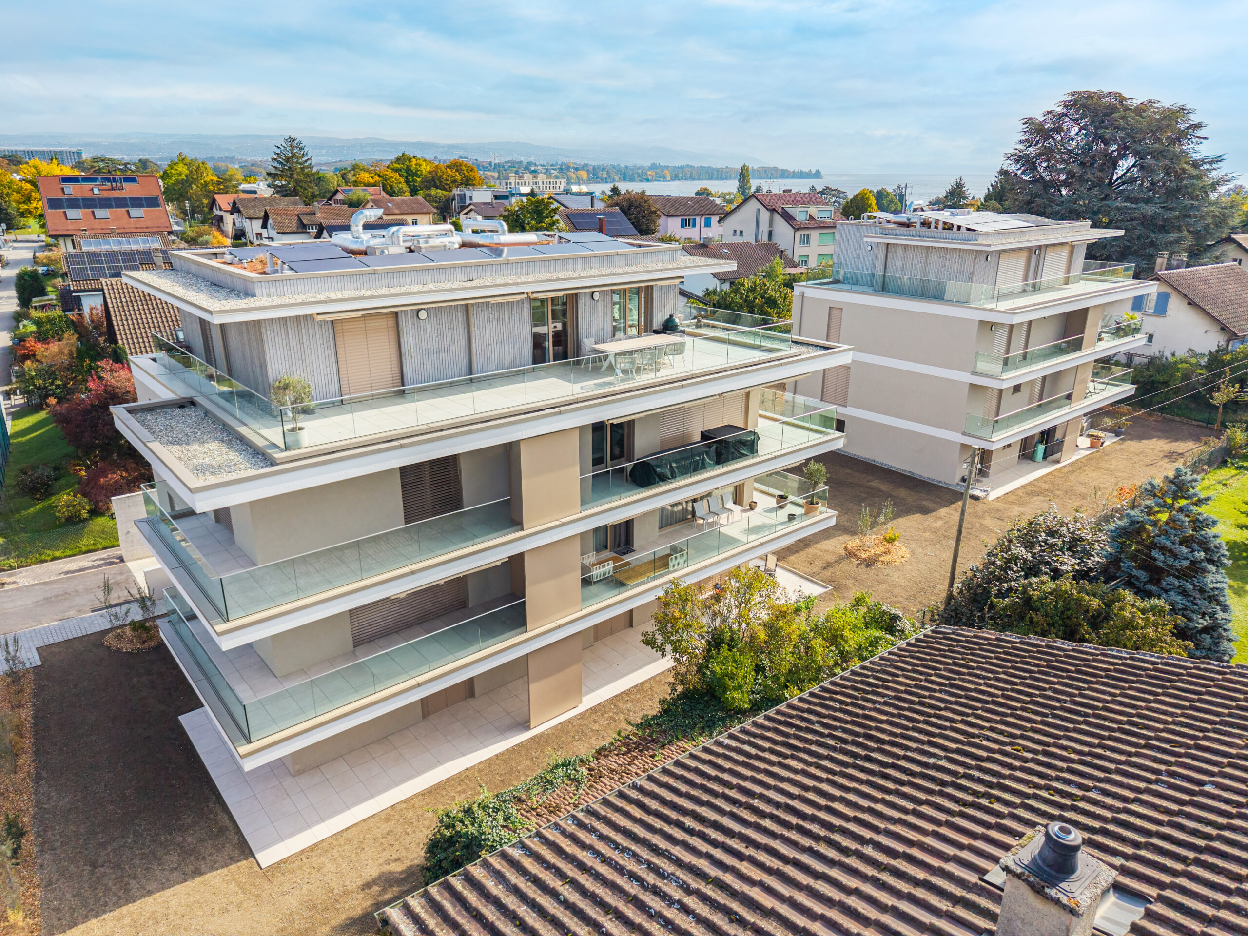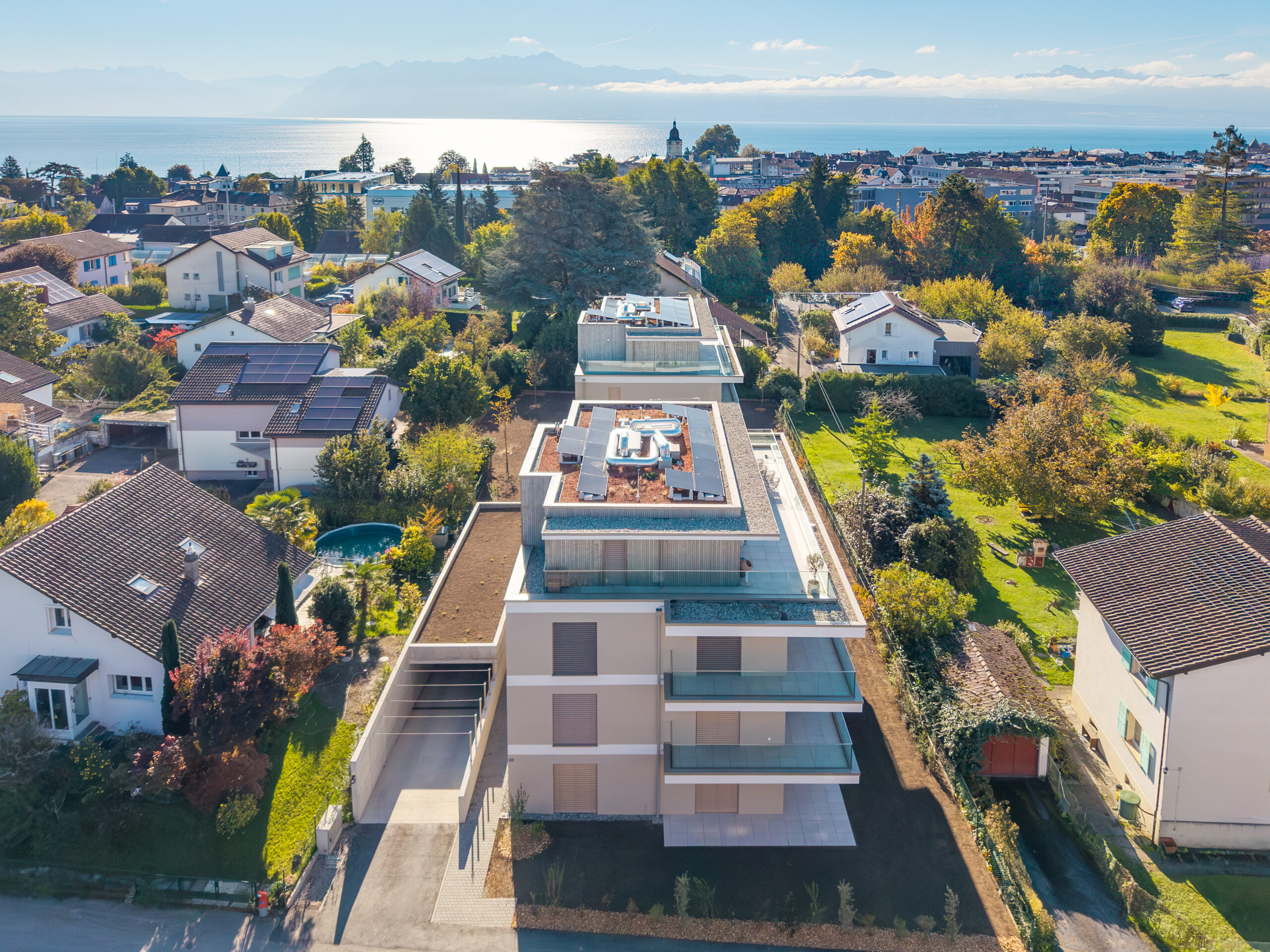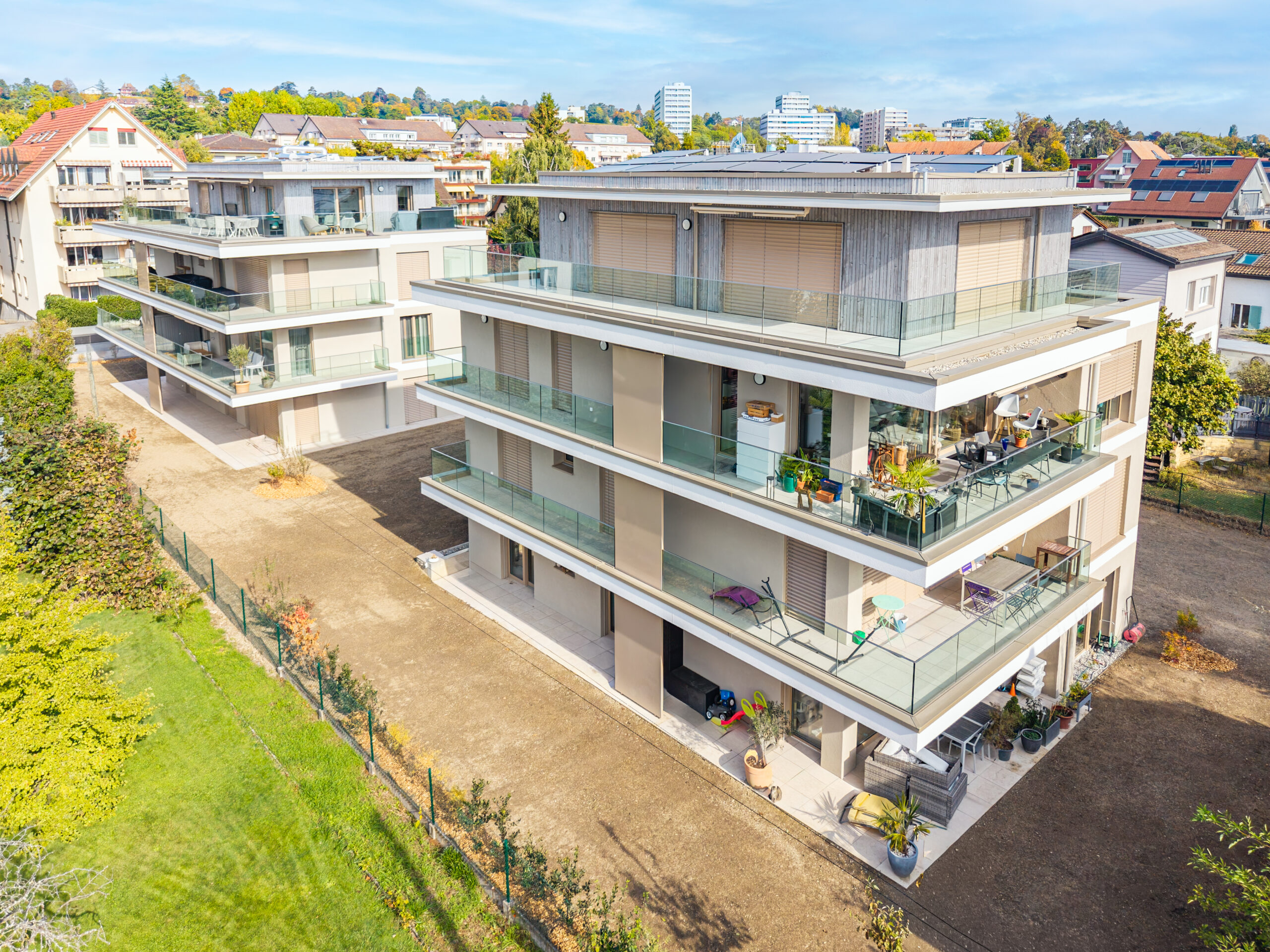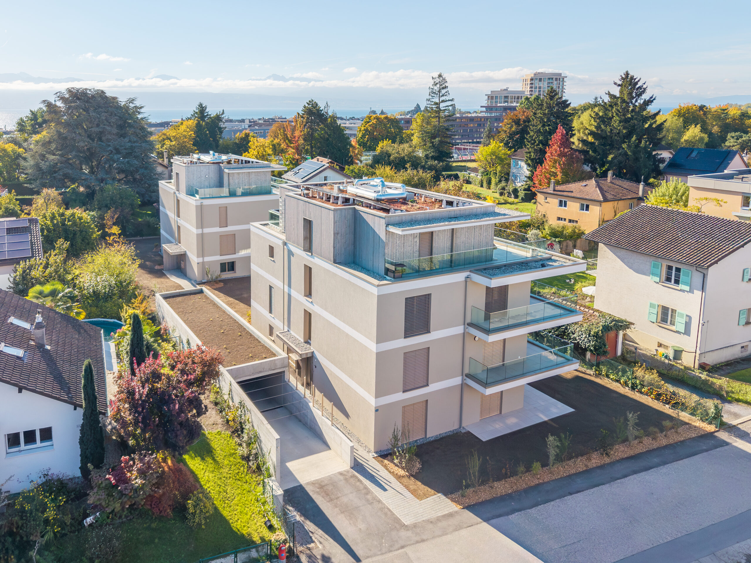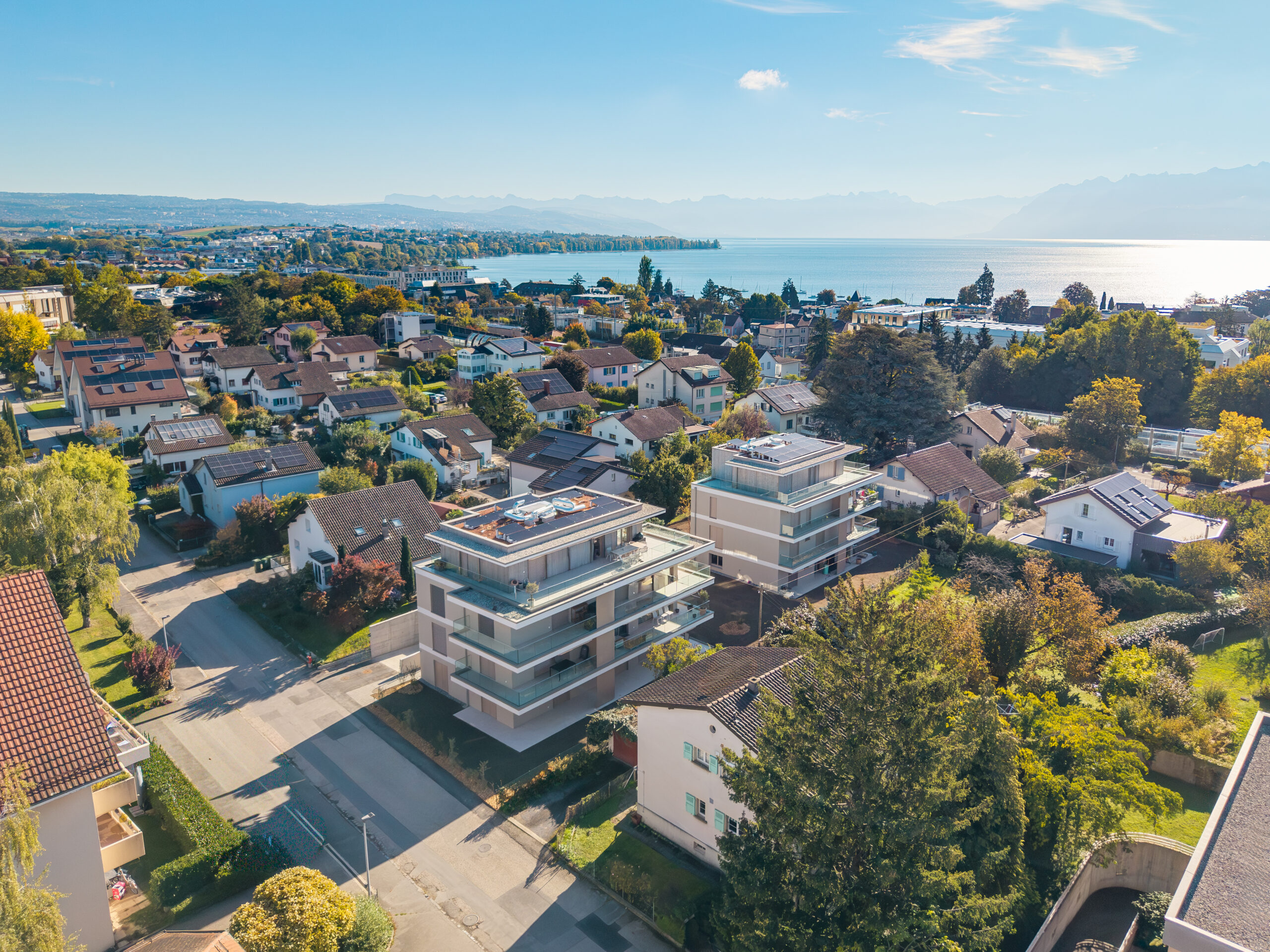 Niché au cœur de Morges, les Résidences Alois comprennent deux bâtiments modernes, reliés par le parking souterrain. Un projet qui offre l’opportunité de vivre à la fois dans un quartier calme et verdoyant, tout en profitant de la proximité des commodités de la ville.