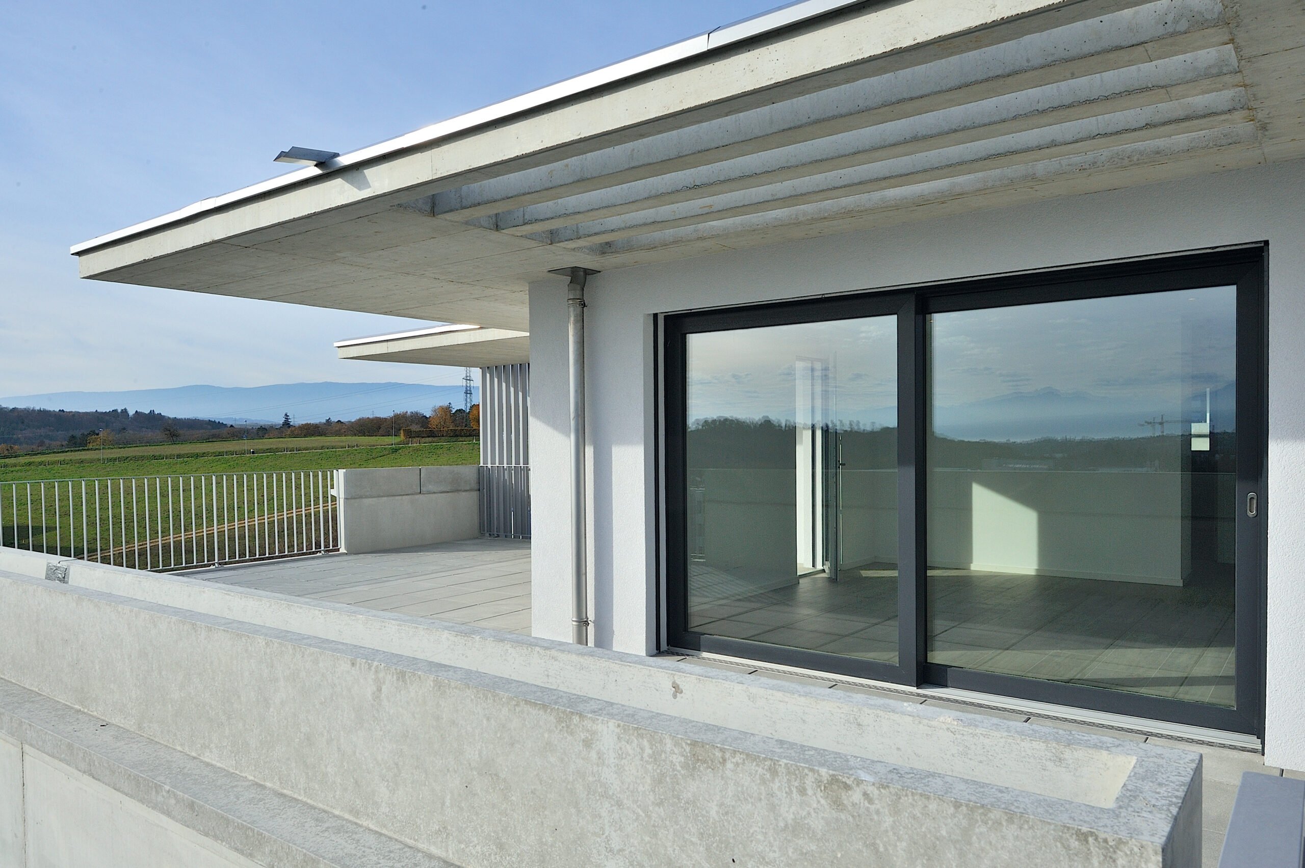 Les 2 bâtiments sont labellisés Minergie” avec chauffage par pompe à chaleur et sondes géothermiques.