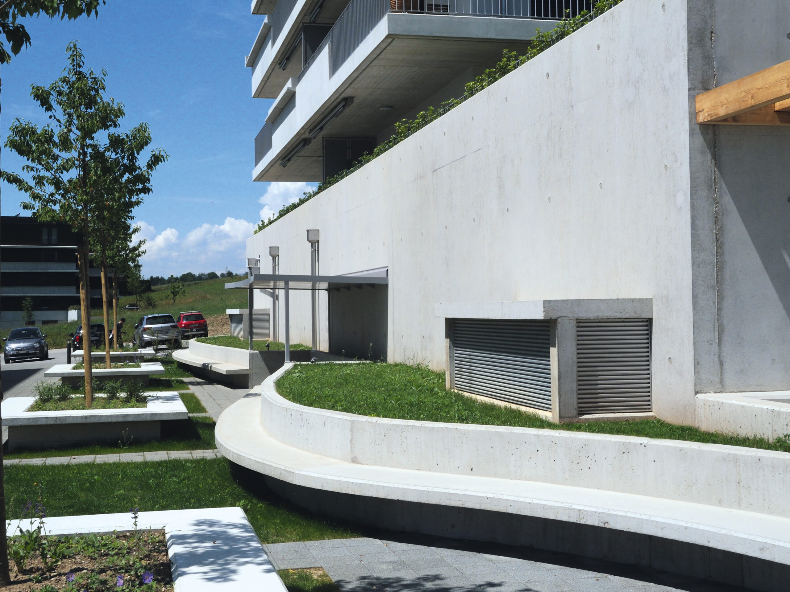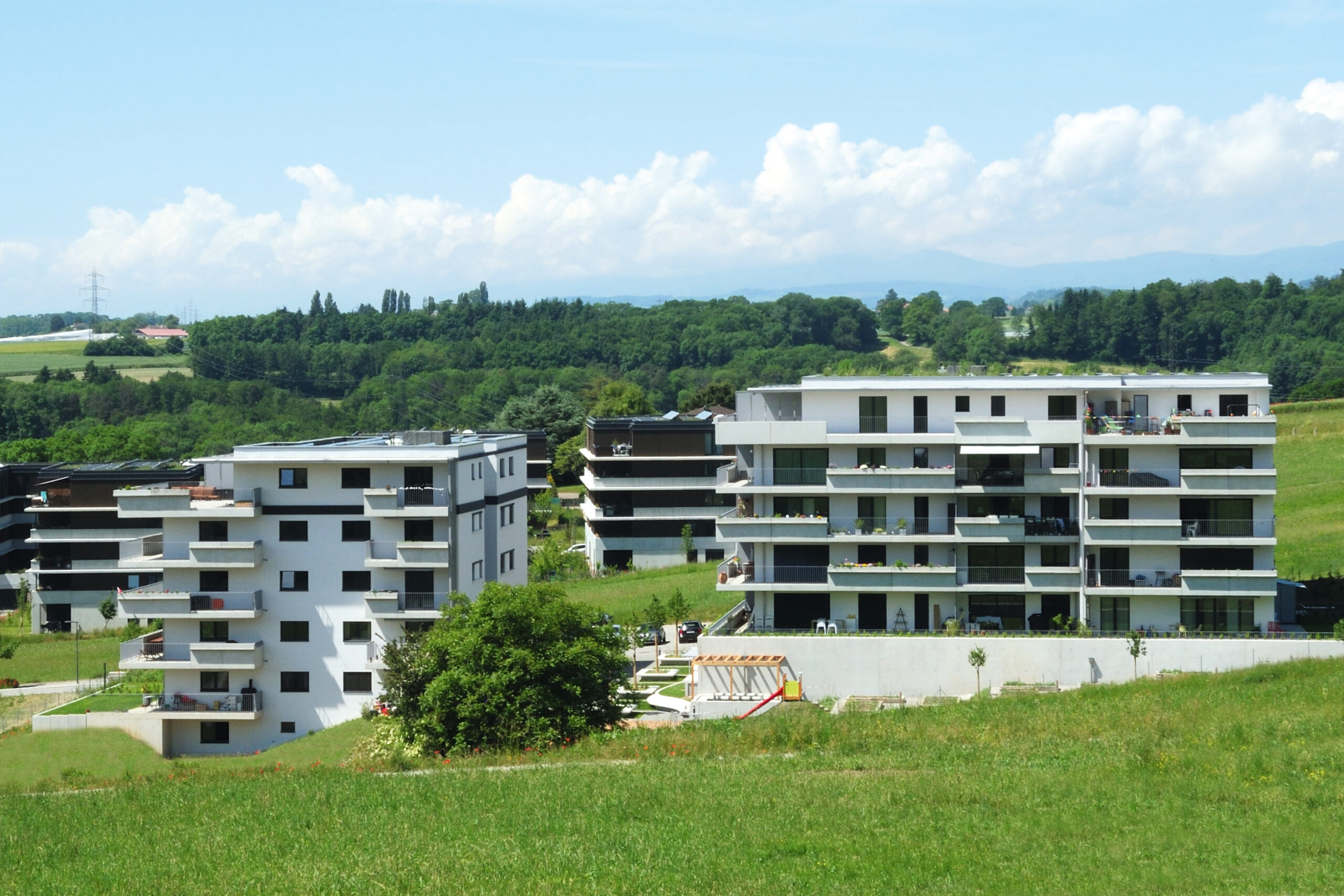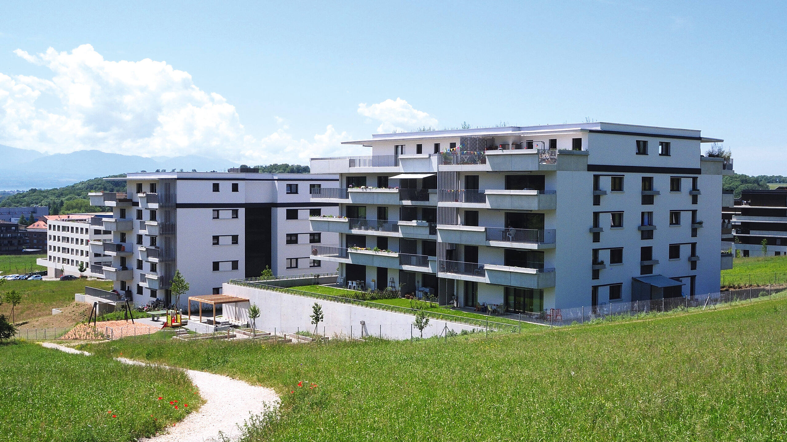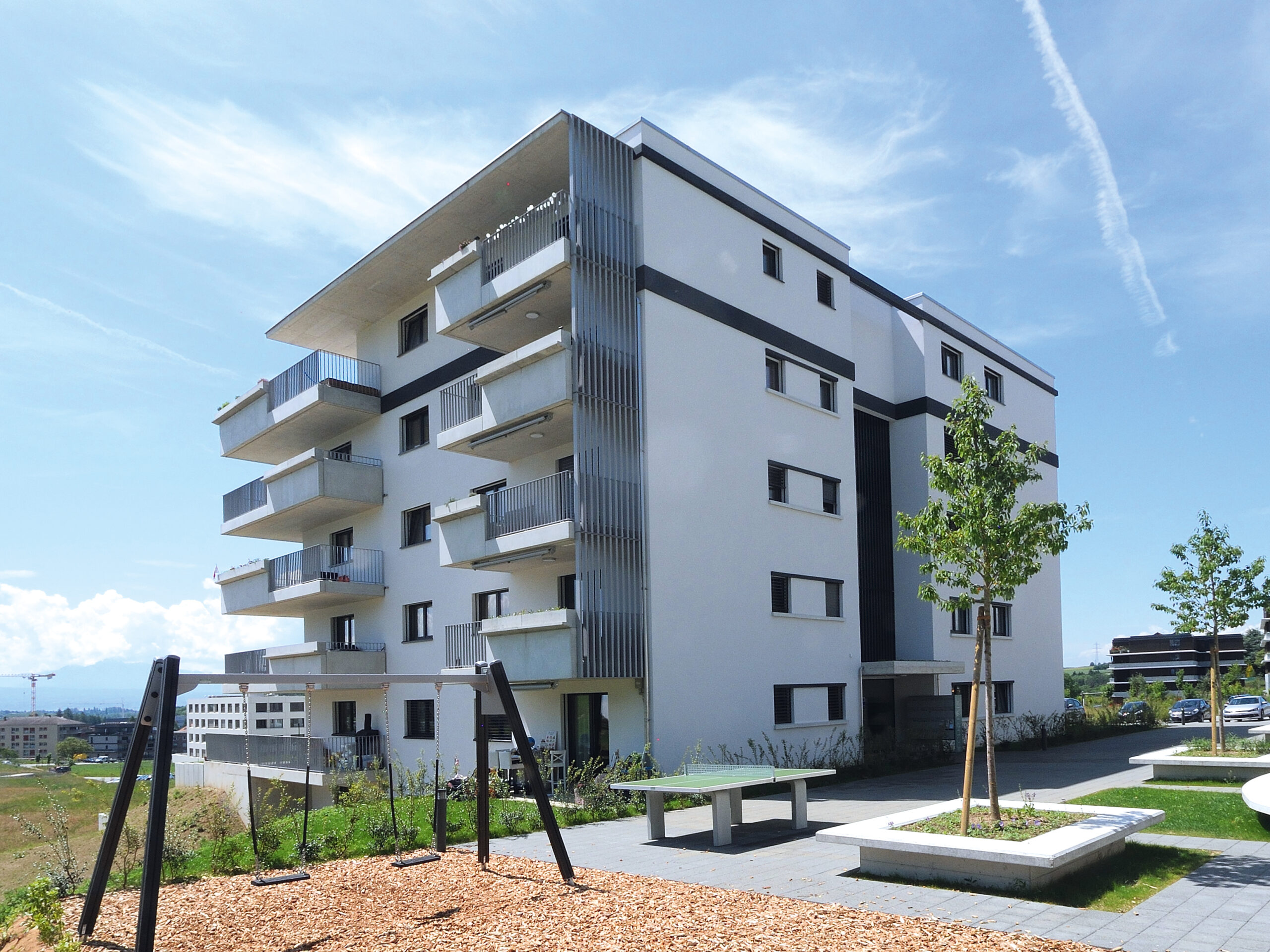 Réalisation de 2 immeubles avec 45 appartements. Sur les 5 étages de chacun des bâtiments, se déploient studios, 2.5, 3.5 et encore 4.5 pièces avec toutes les orientations possibles.
