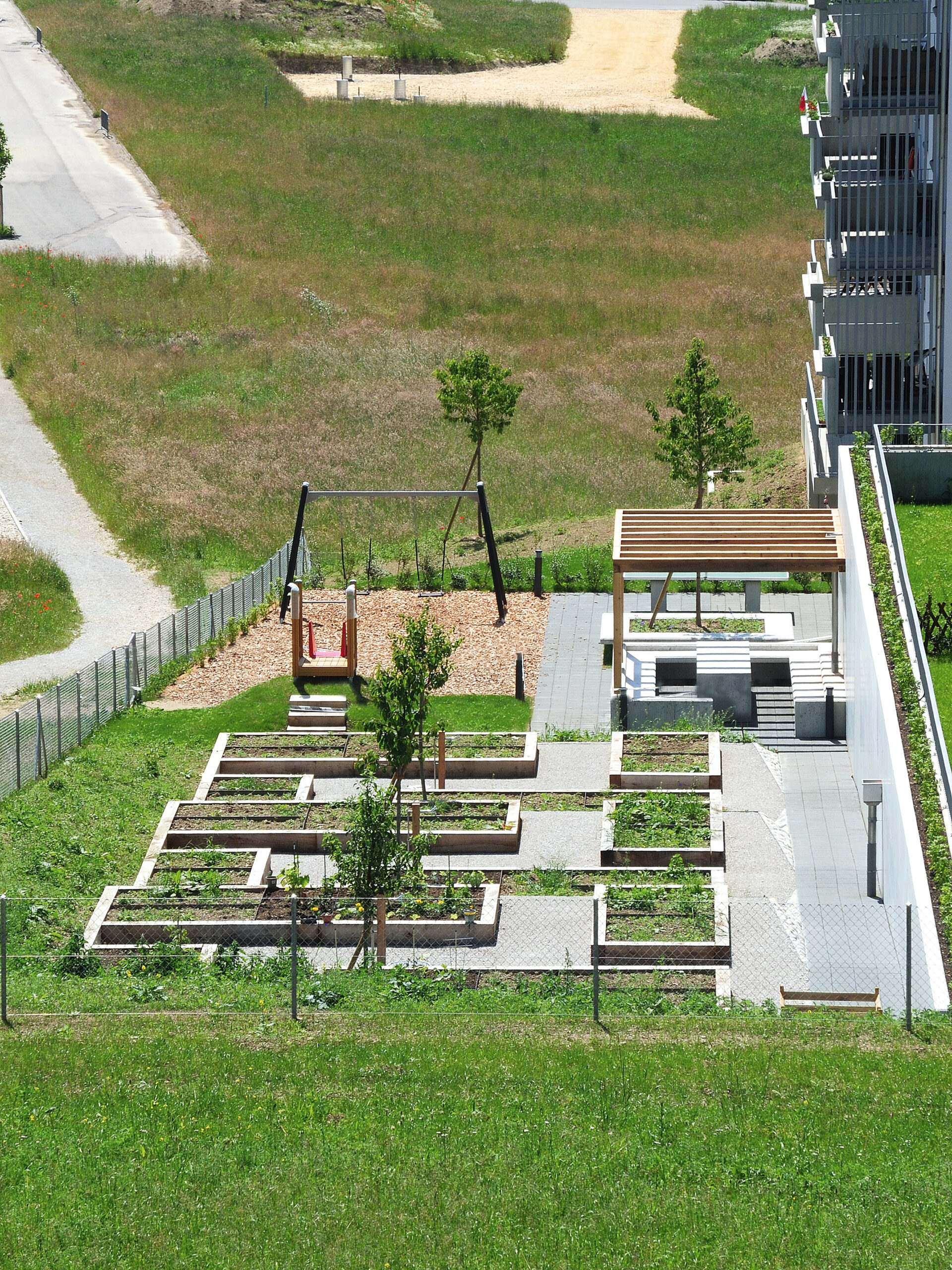 Chaque logement profite d’un balcon généreux ou d’une terrasse pour se projeter dans le cadre verdoyant du lotissement.
