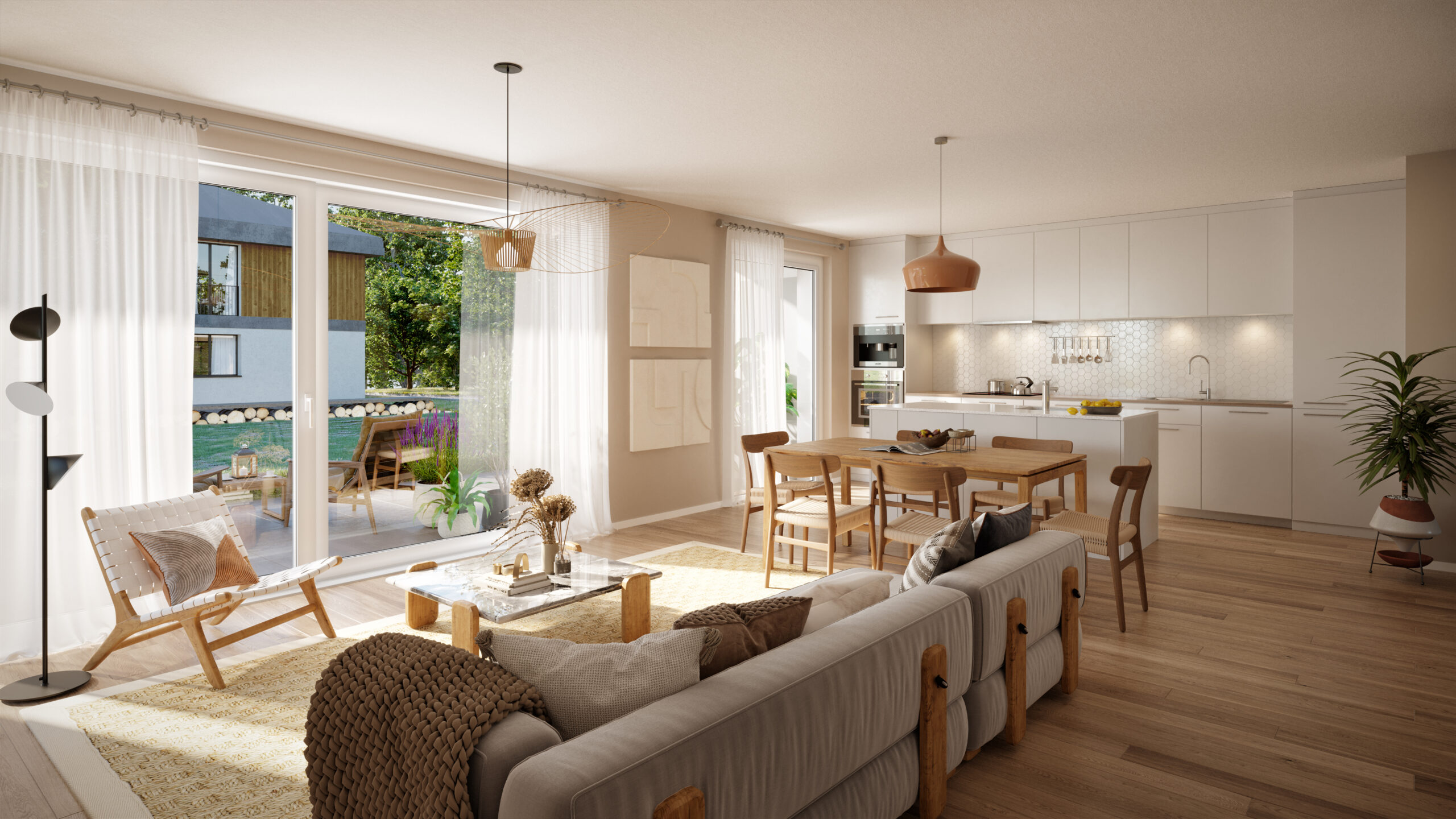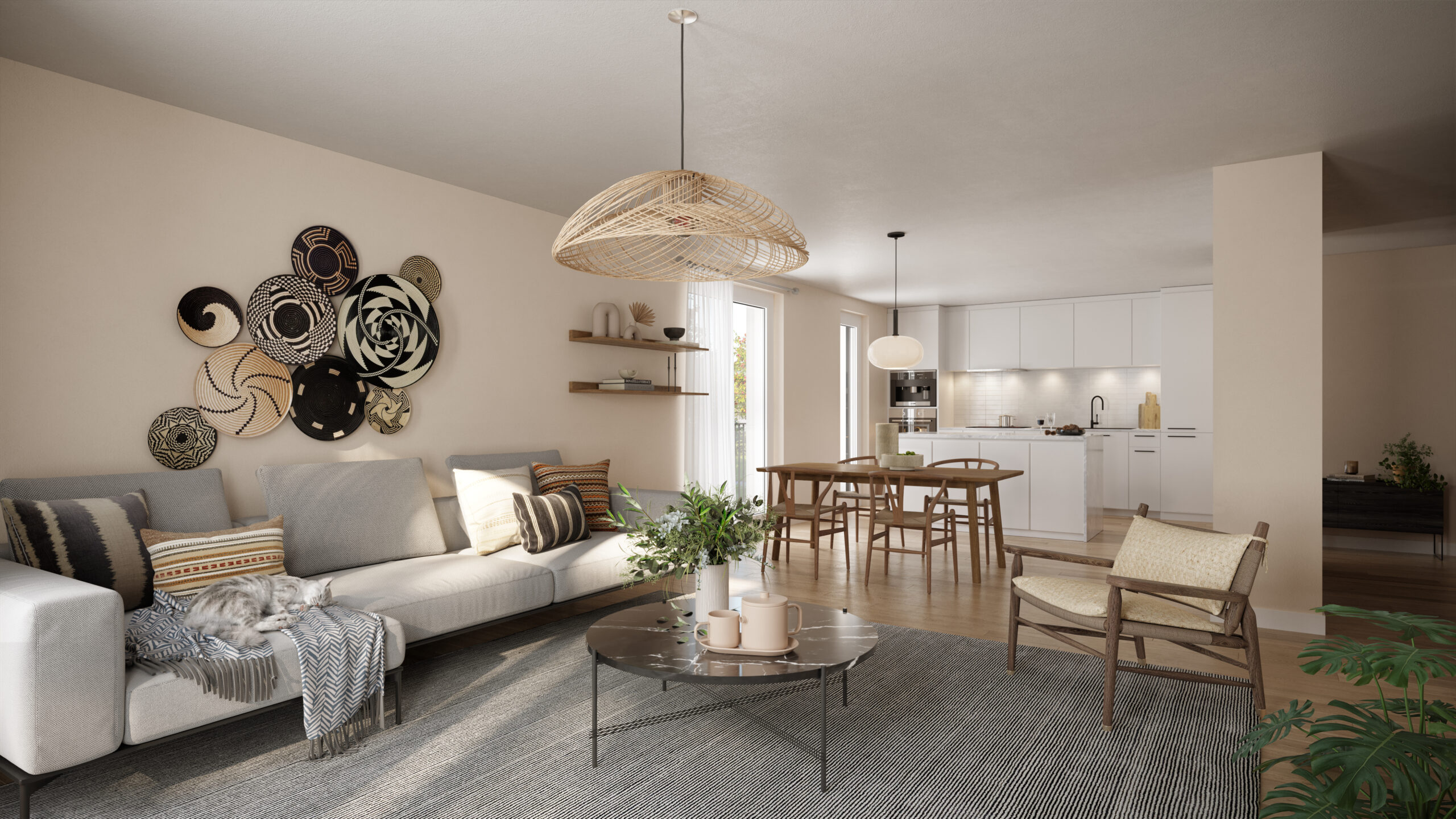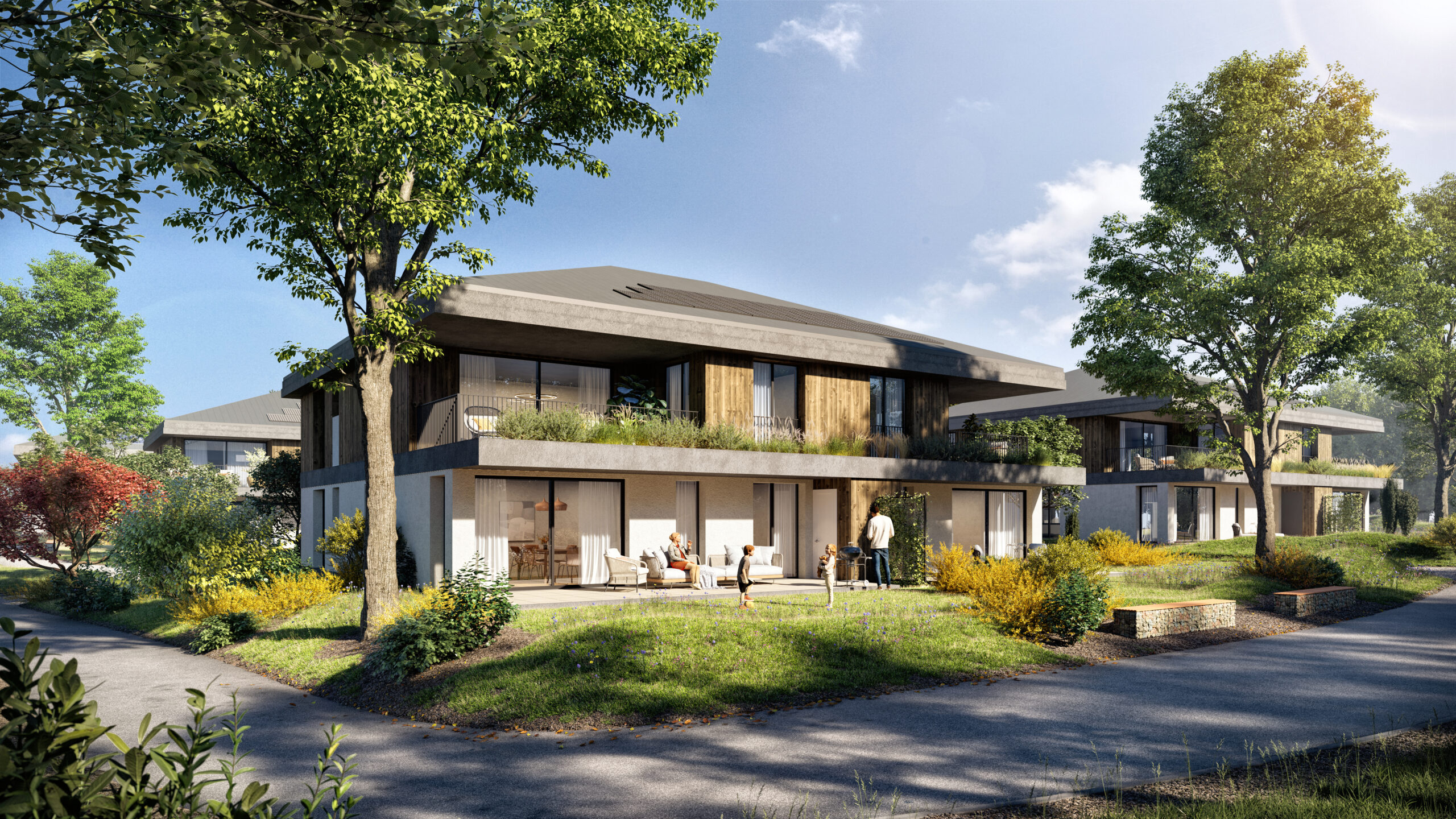 Constitué de 8 bâtiments dont 32 appartements et 4 villas jumelles, le résidence Symbiose se veut résolument à taille humaine.