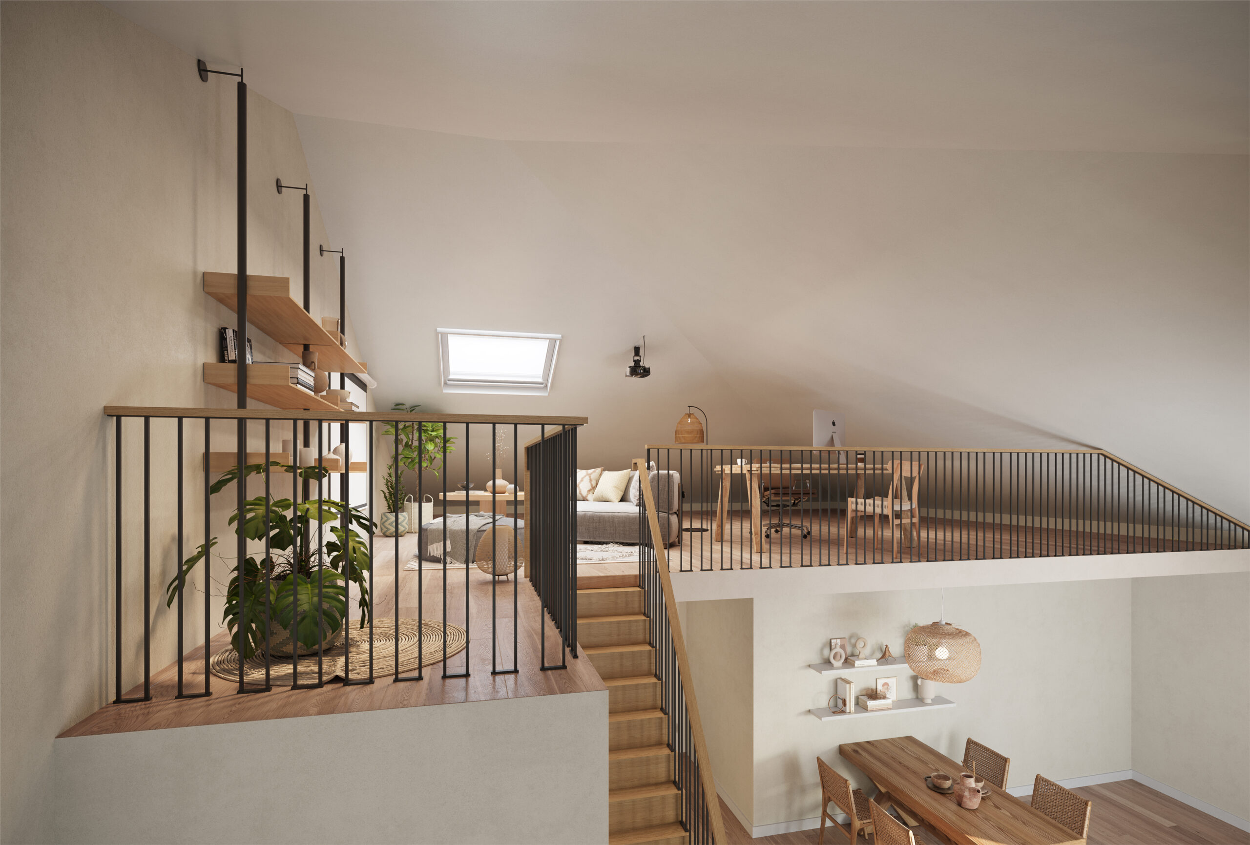 Avec seulement 2 niveaux de construction, l’impression d’espace et de légèreté prédomine.